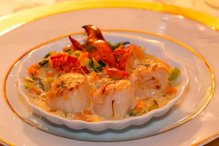 Ajoutez la crème liquide, le safran, poivrez et faites réduire légèrement. Nappez les crustacés et les légumes avec la sauce au champagne. Ajoutez les noix de St-Jacques. Enfermez ensuite chaque coquille dans une papillote Faites réchauffer 10 min environ. Servez aussitôt.